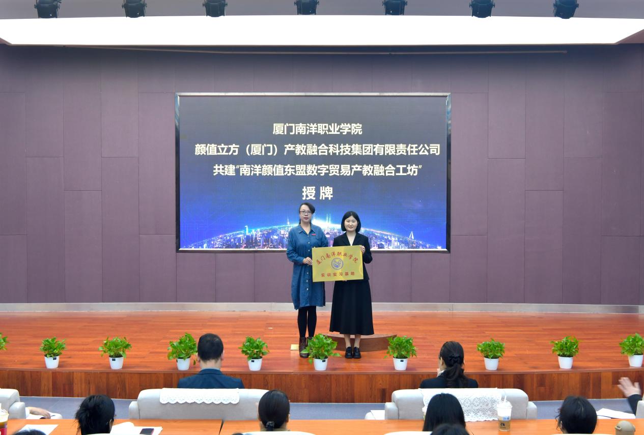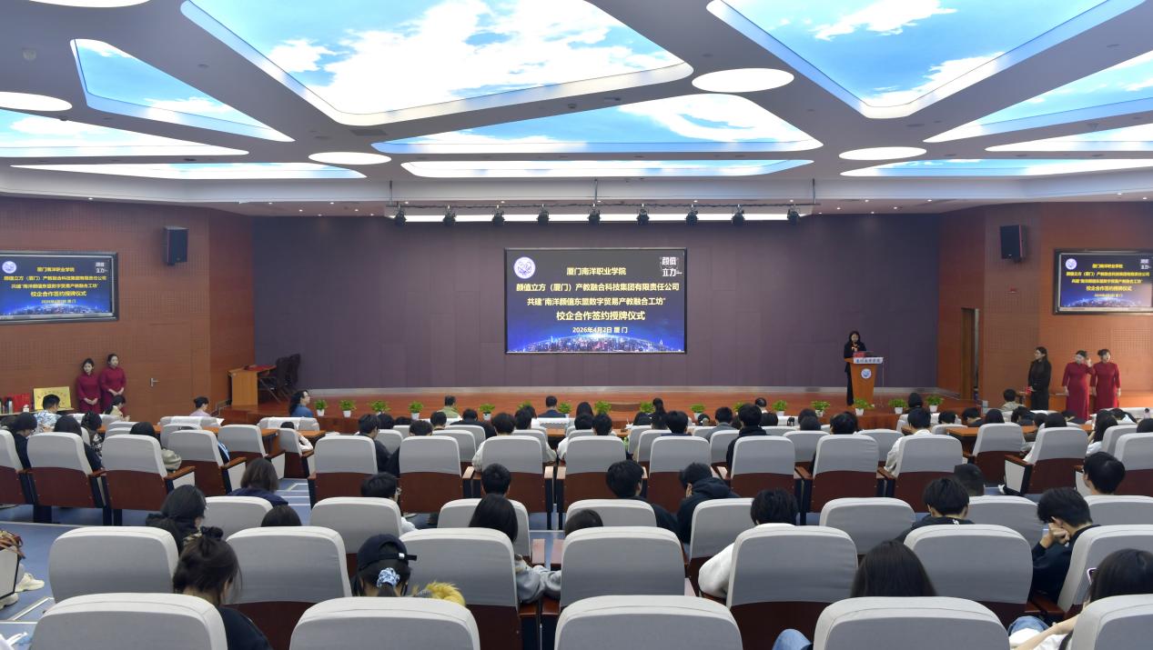 签约仪式后,颜值立方集团开展现场宣讲,介绍企业发展布局、业务板块及校企合作的后续规划。接下来校企双方将以“三元制”人才培养模式为核心,依托“南洋颜值东盟数字贸易产教融合工坊”平台,通过共建课程、共育师资、共办竞赛,推动“以赛促学、以赛促教、以赛促产”。同时,借助颜值立方集团的国际化布局,探索人才国际化培养路径,联合开展产业研究与技术创新,推动合作成果落地转化,为厦门打造跨境电商产业高地、服务国内国际双循环,培养更多应用型、复合型东盟数字贸易英才,以职业教育高质量发展赋能区域数字经济产业升级。